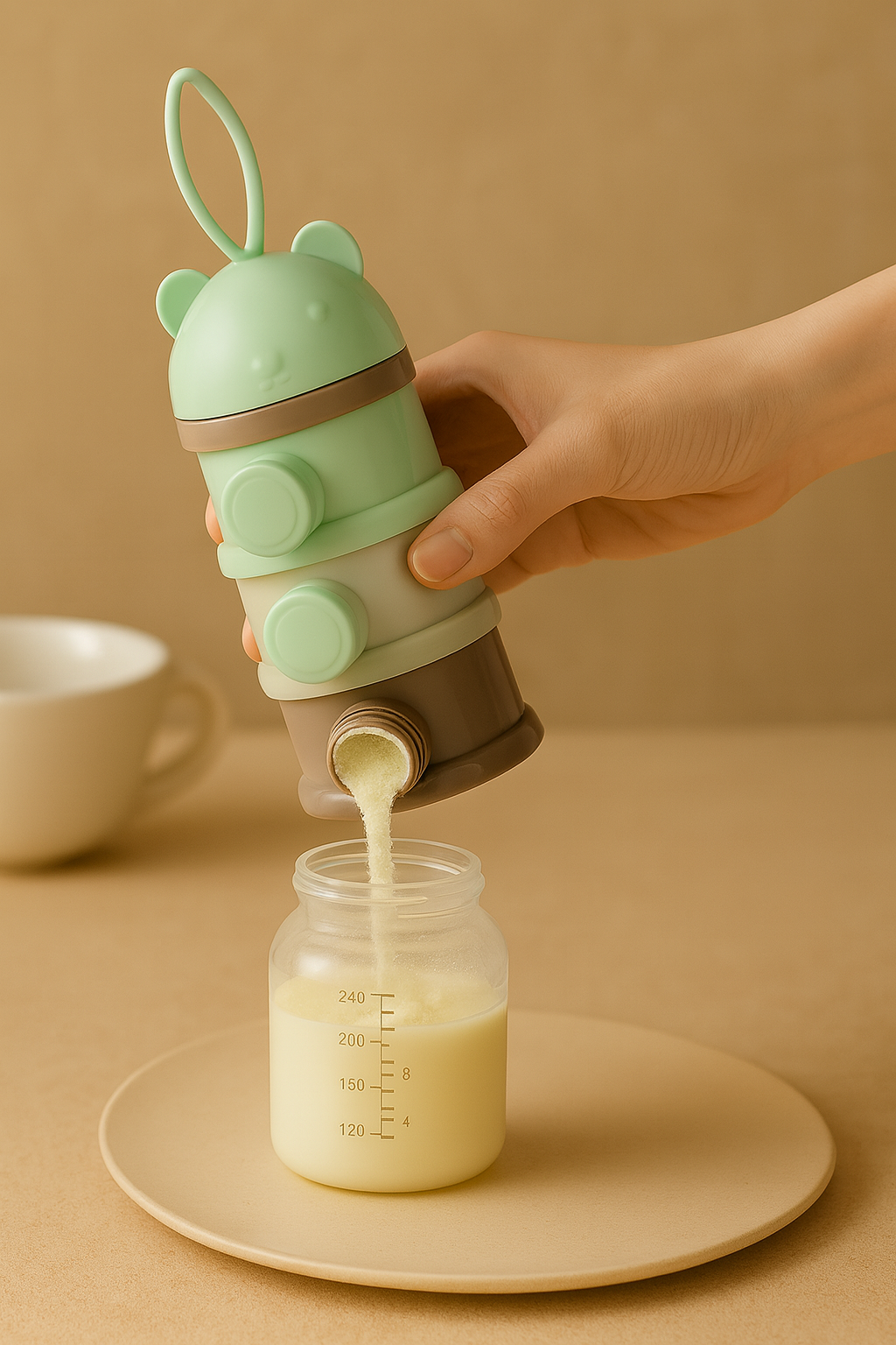 Whether for powdered milk, snacks or pieces of fruit , this well-designed companion ensures that you are always perfectly prepared on the go.